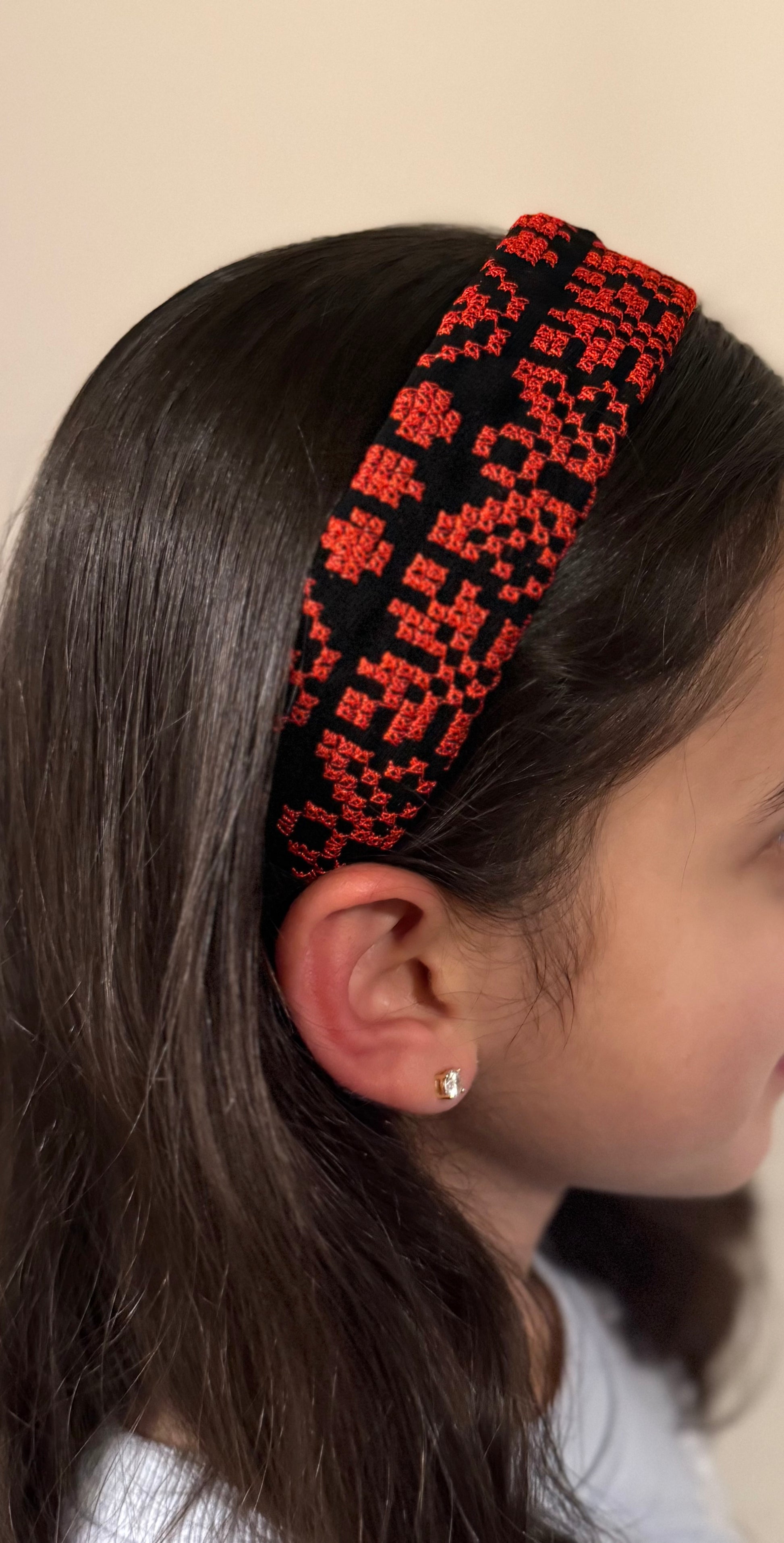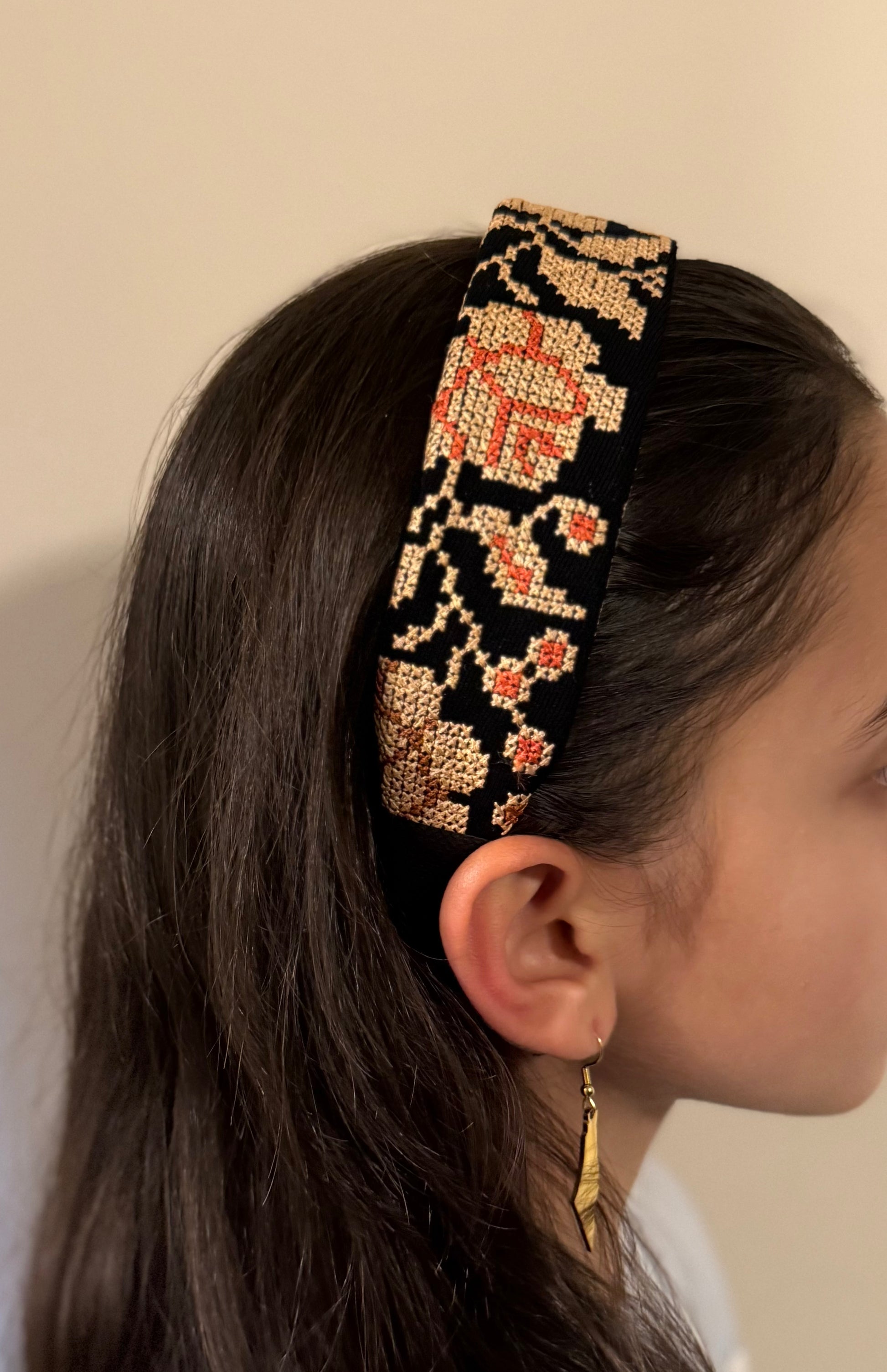 Add a touch of heritage and style to any outfit with our beautiful Tatreez (embroidered) headband. The headband is not only beautiful but also practical—crafted with small inner teeth that gently grip the hair, it stays securely in place all day without slipping. Comfortable and lightweight, it’s perfect for daily wear, cultural events, or special occasions.
